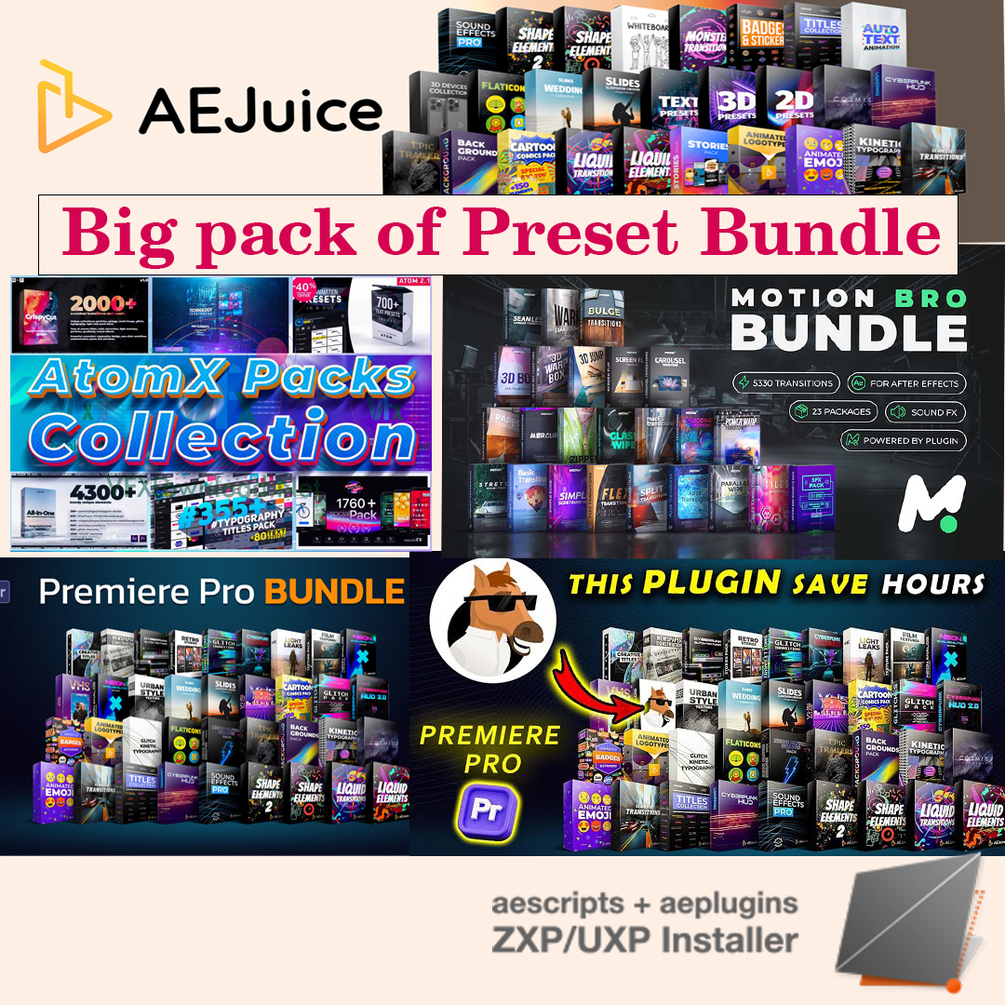 Big pack of Preset and Plugin's bundle for AFTER EFFECTS AND PREMIERE PRO YOU WILL GET INTHIS PACK UPTO ( 100GB DATA)